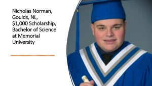 - David Rowe of St. John’s is a $250.00 scholarship winner. He is a first-year student at Memorial University, St. John’s Campus.